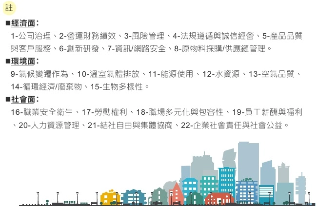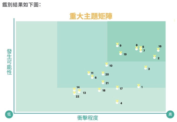 2. 分析利害關係人對議題關注之發生可能性及衝擊程度,再由公司高層長官分析利害關係人關注議題對公司衝擊之影響程度,及考量本公司推動ESG政策,決定重大性之議題。