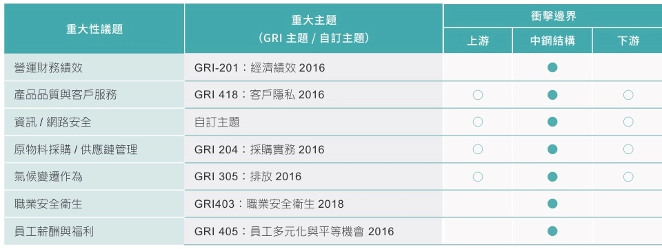 中鋼結構依據以下程序進行,鑑別出利害關係者所關注的重大性議題: