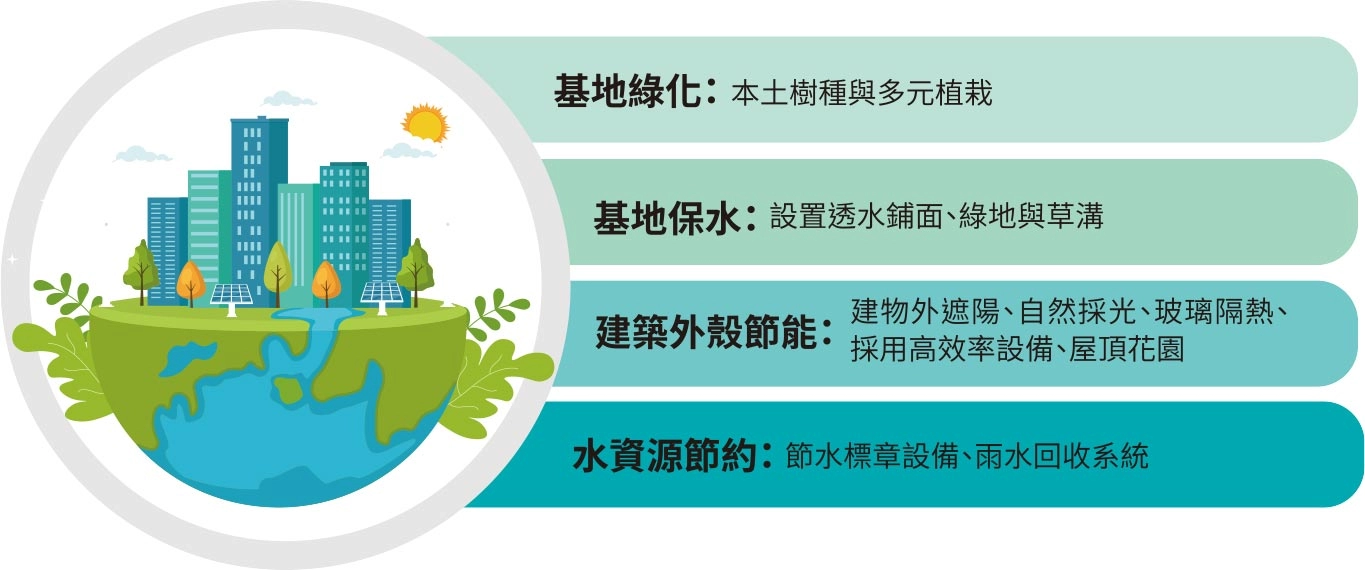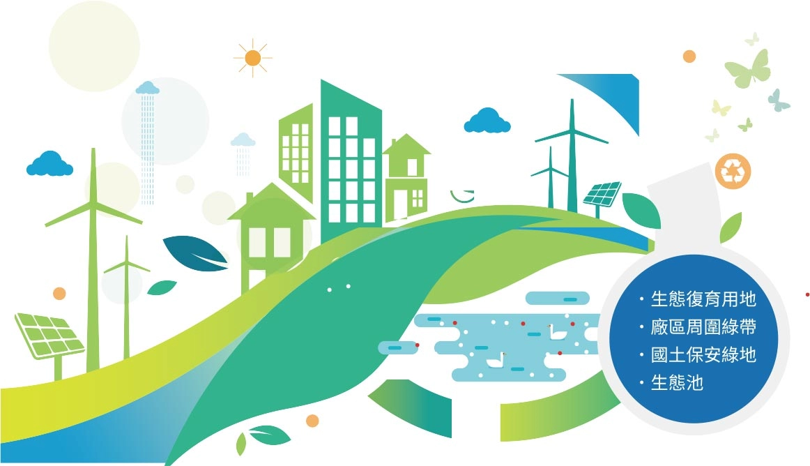 另配合污水處理後之回收利用,另規劃「自然生態污水淨化系 統」(Nature Treatment System for Water Pollution Control), 利用生態工法進行污水處理,生態池內種植多樣化水生植物,營造自 然環境棲地,達成與周邊環境自主循環系統平衡。