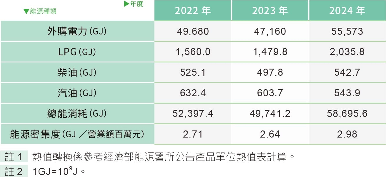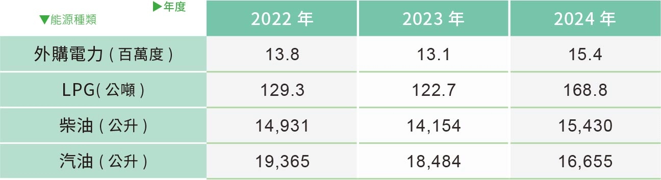 中鋼結構2022-2024 年各能源使用狀況如下所示: