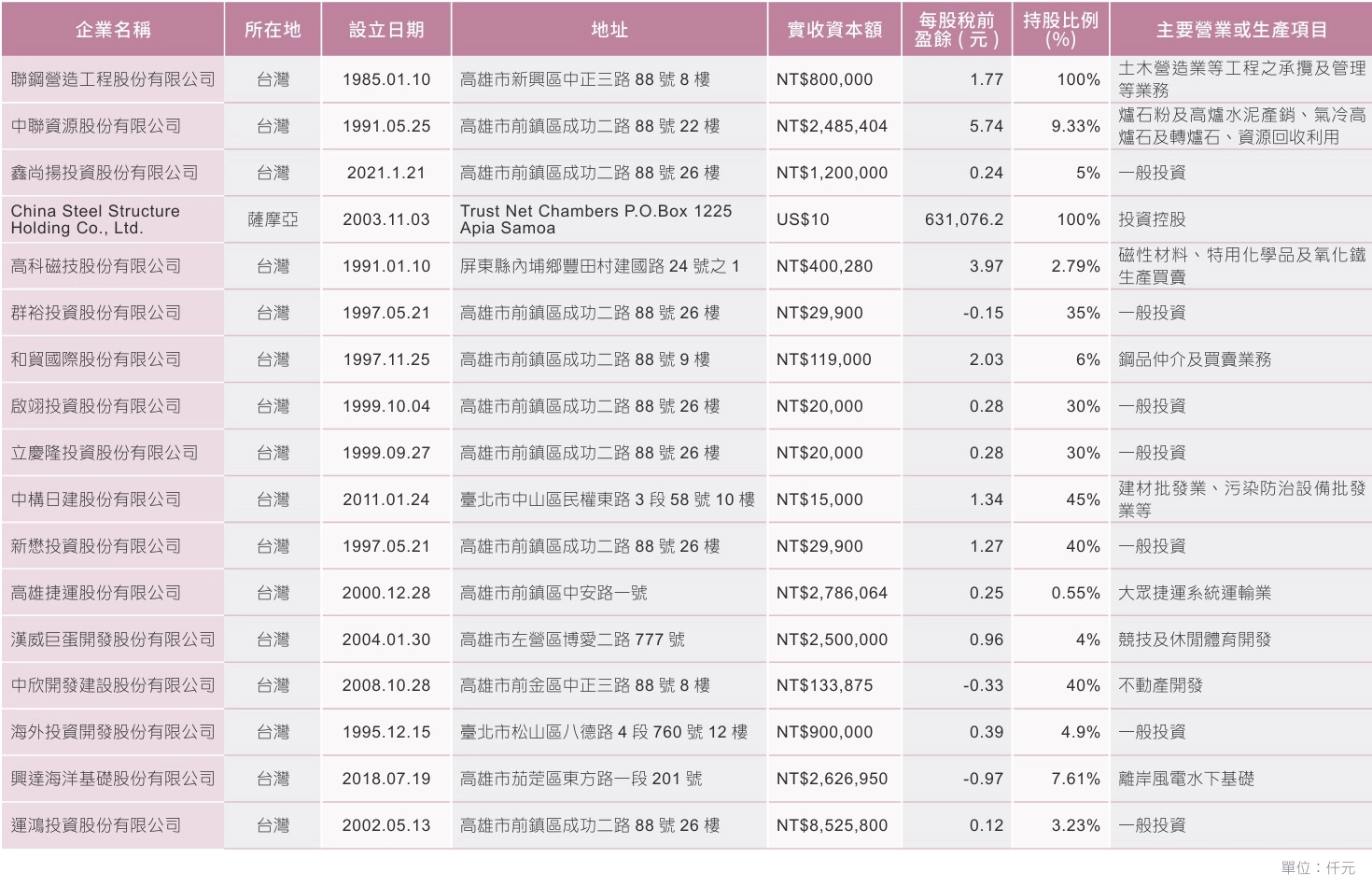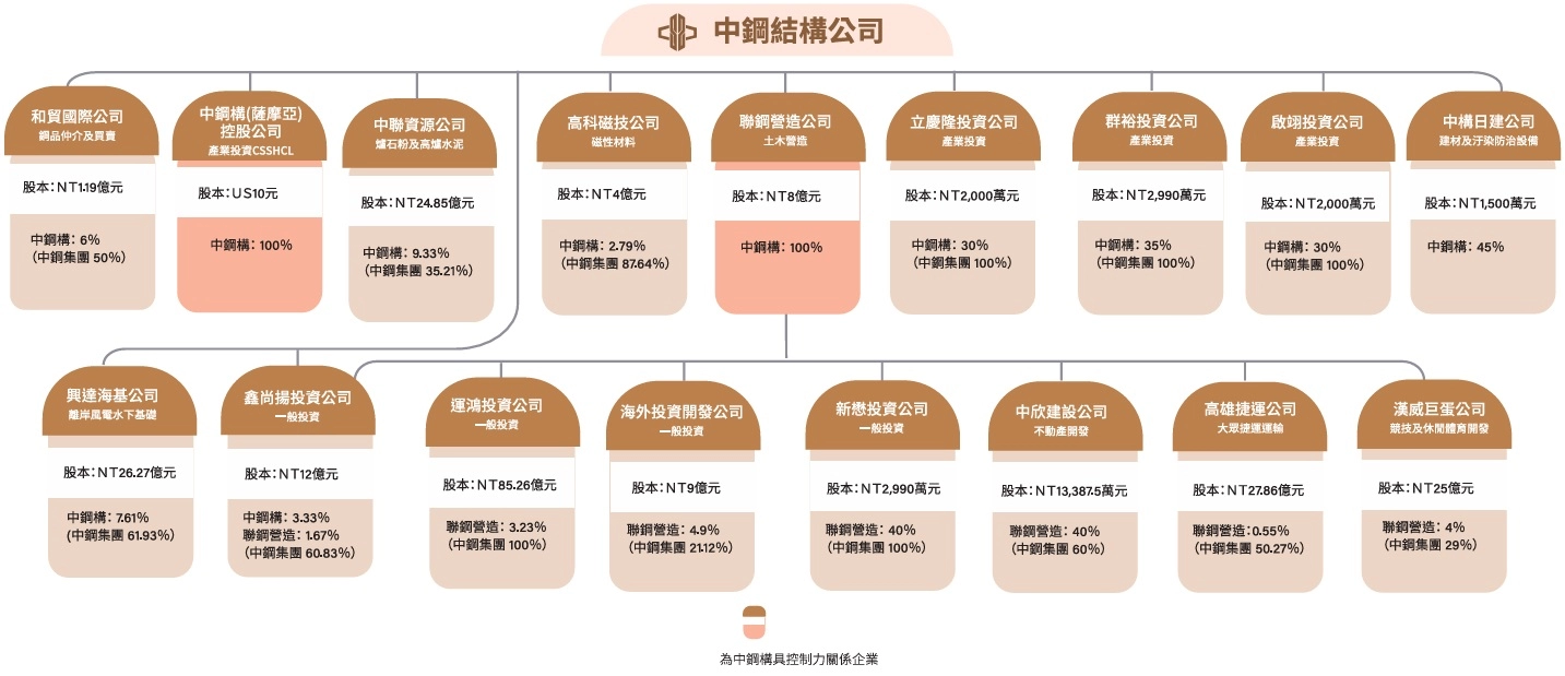 中鋼結構為配合業務推展需要,經營方向朝多角化發展,國內外轉投資公司如下圖所示: